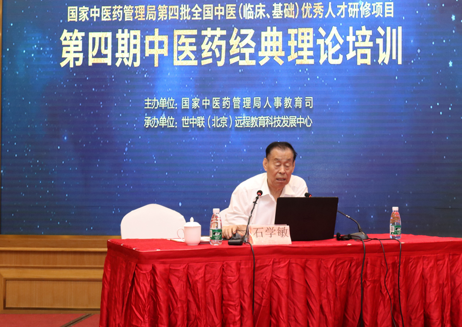 2019年7月9日上午,第四批全国中医(临床、基础)优秀人才研修项目第四期中医药经典理论培训班正式开课,第一课由中国工程院院士、国医大师石敏教授为学员们讲授“醒脑开窍”针刺法的临床应用及基础研究。