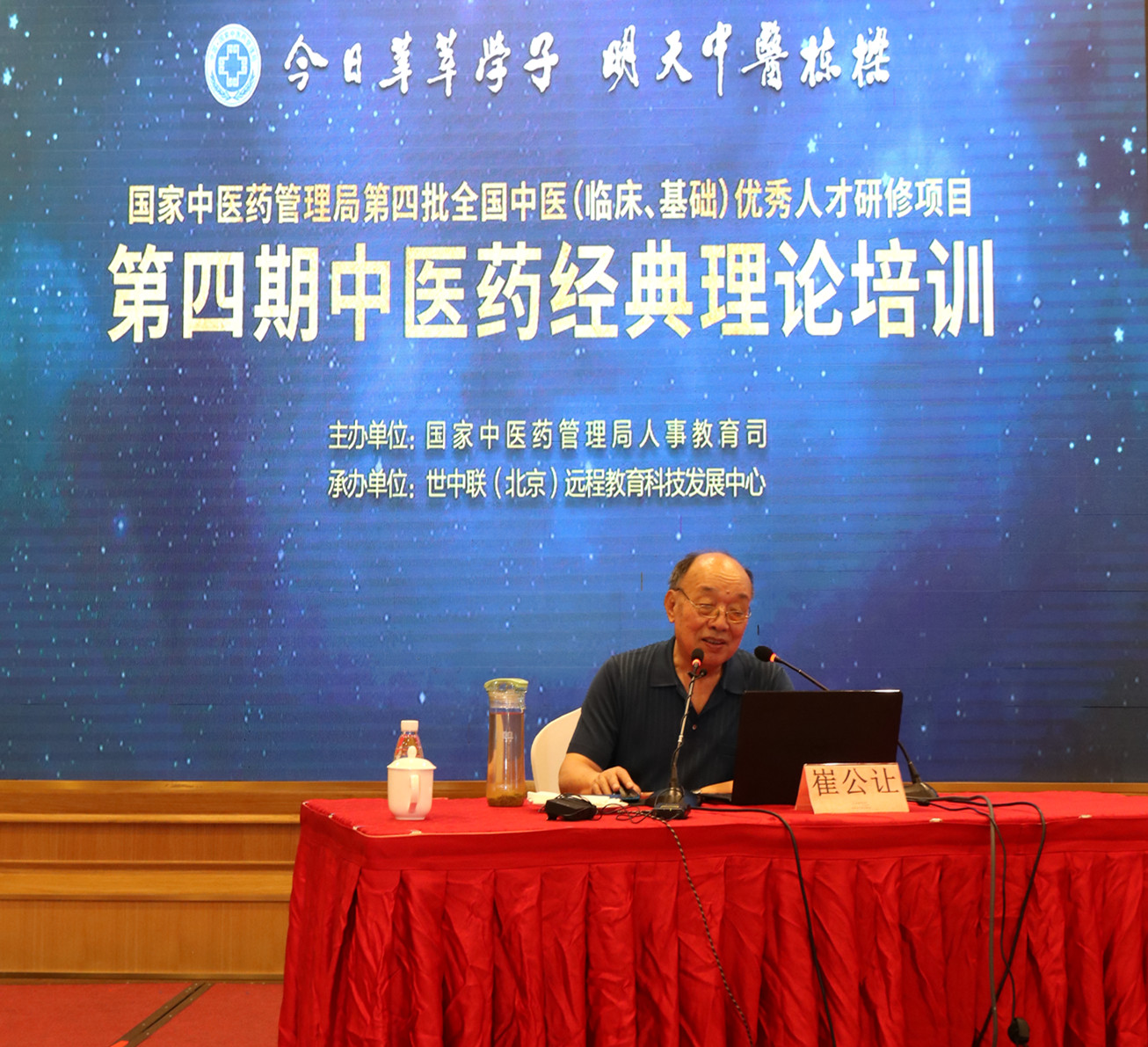 2019年7月13日上午,第四批全国中医(临床、基础)优秀人才研修项目第四期中医药经典理论培训课程主题为“读《金匮》探索诊疗痛风的秘笈”,主讲老师为崔公让教授。